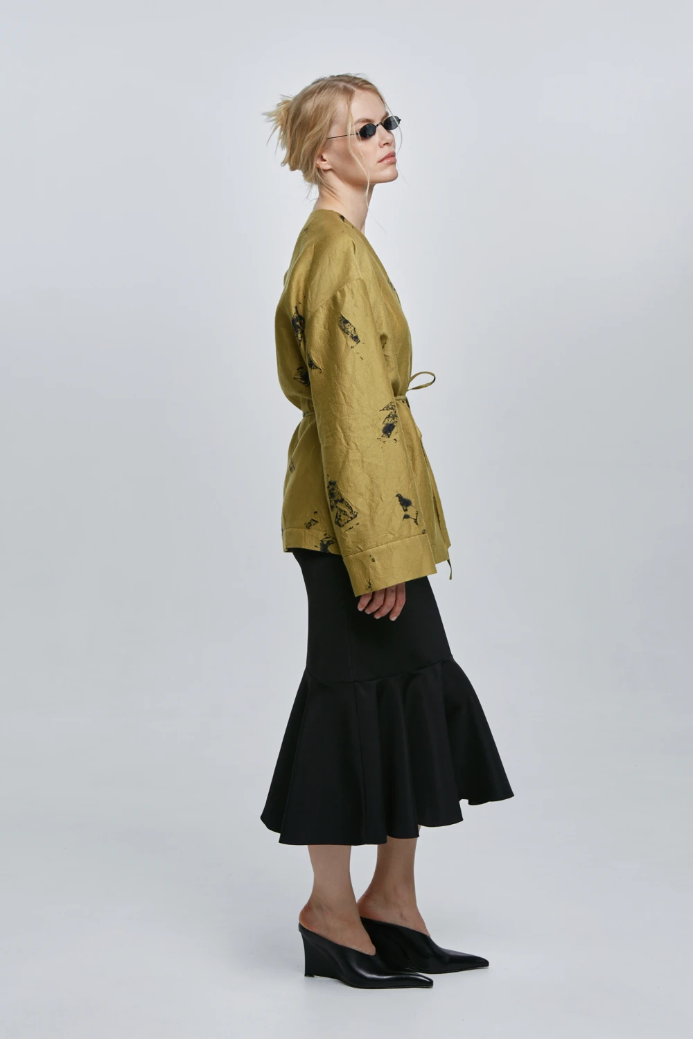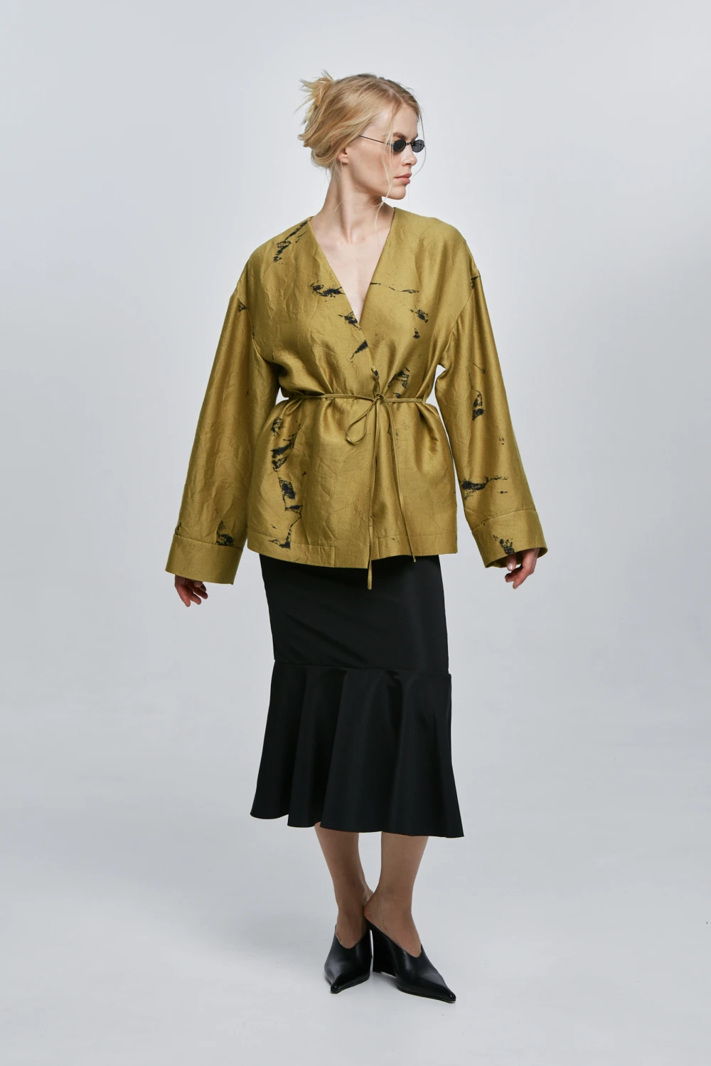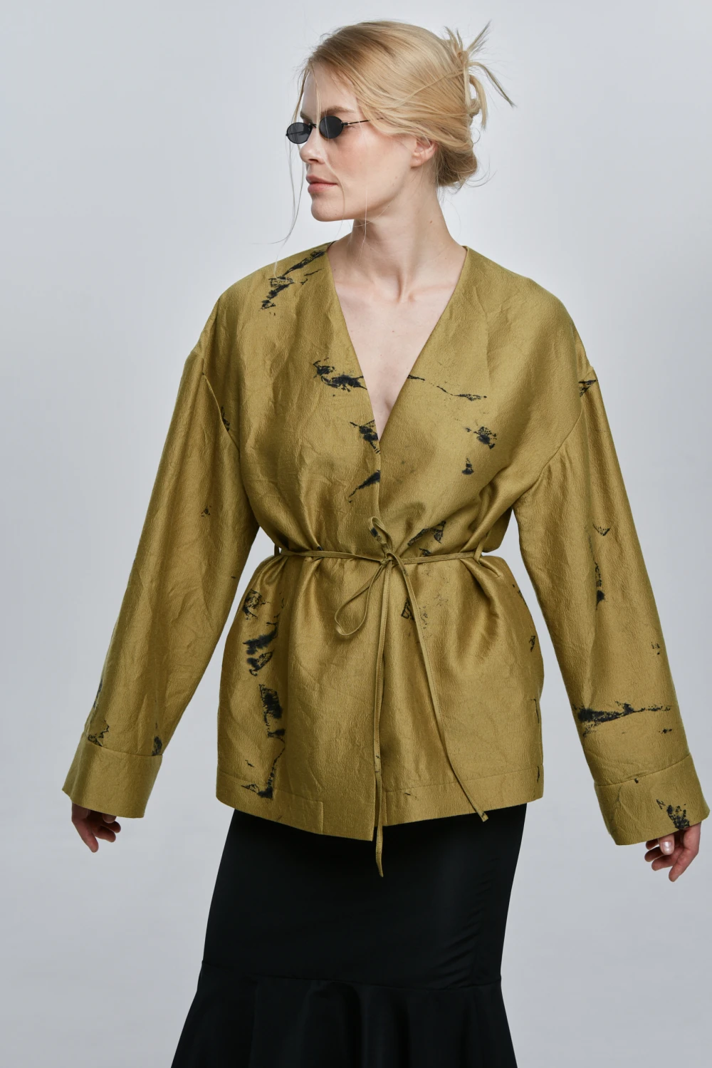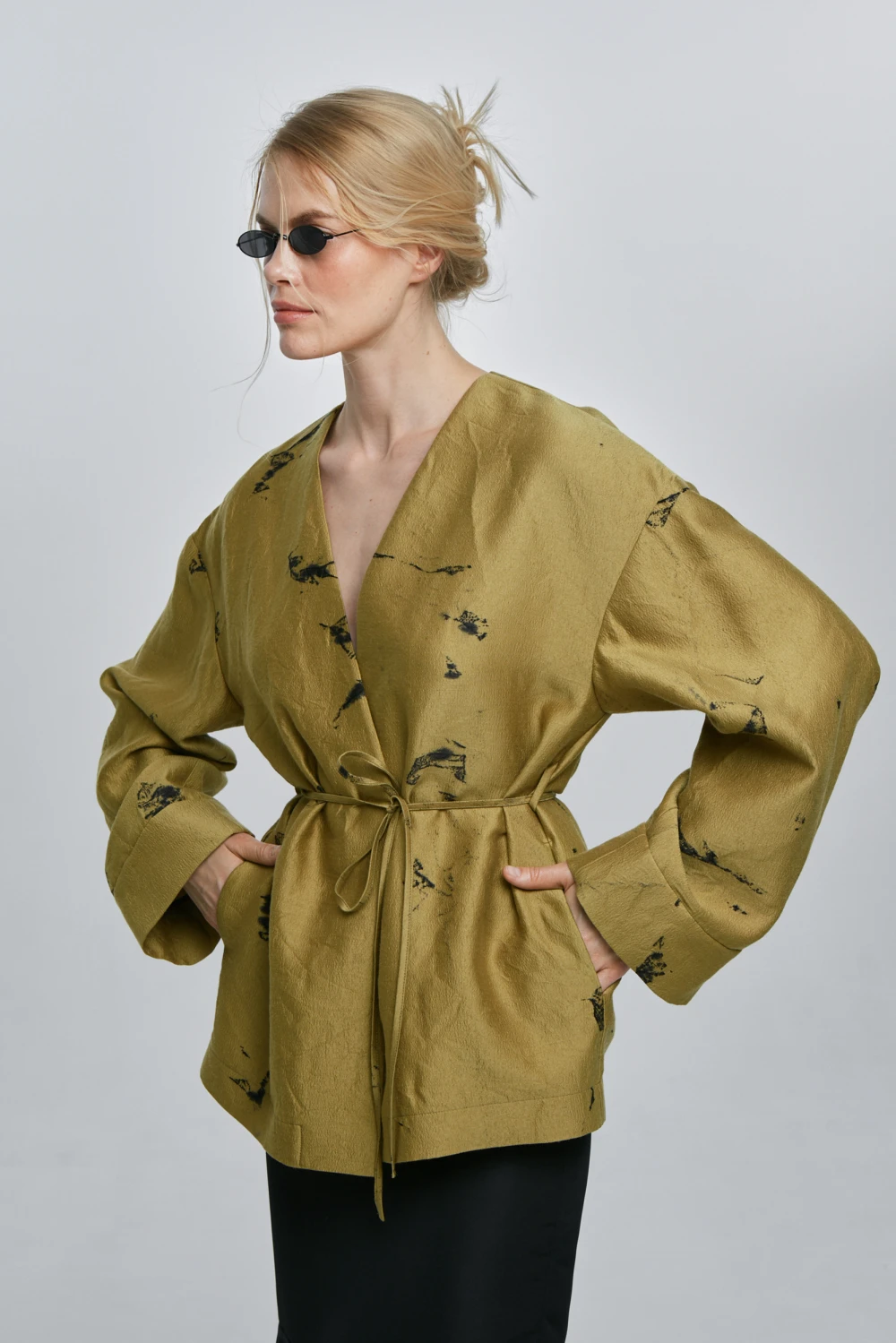 Жакет расслабленного кроя с завязками, для создания приталенного силуета.