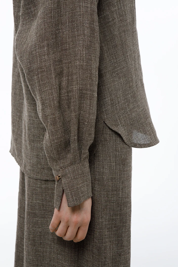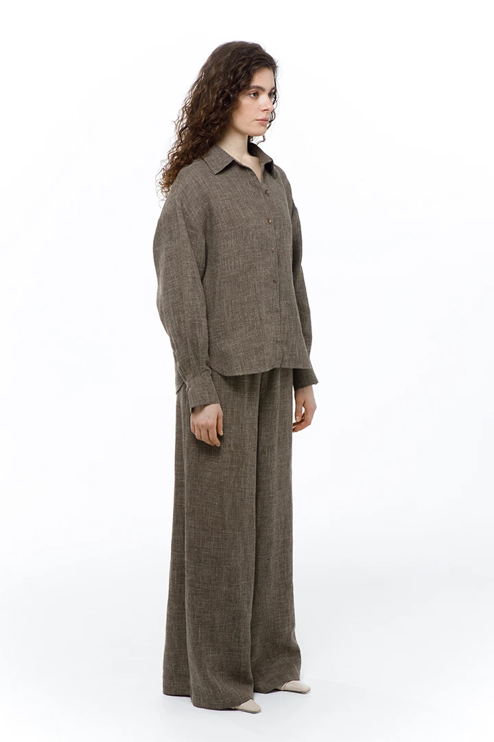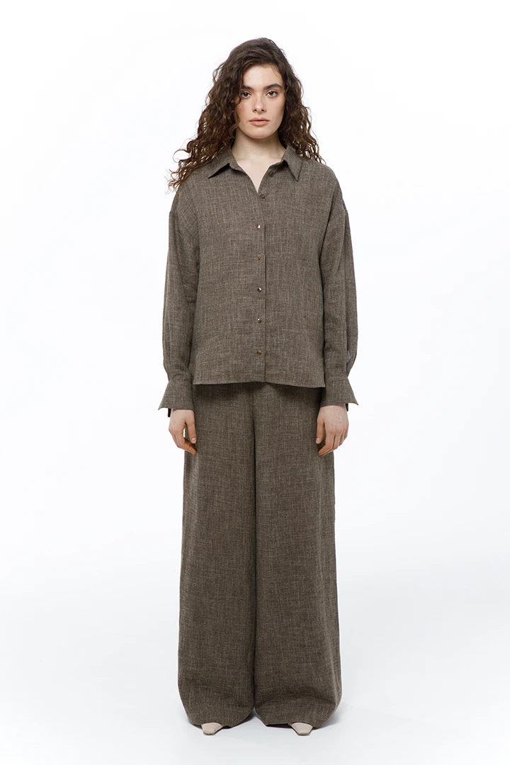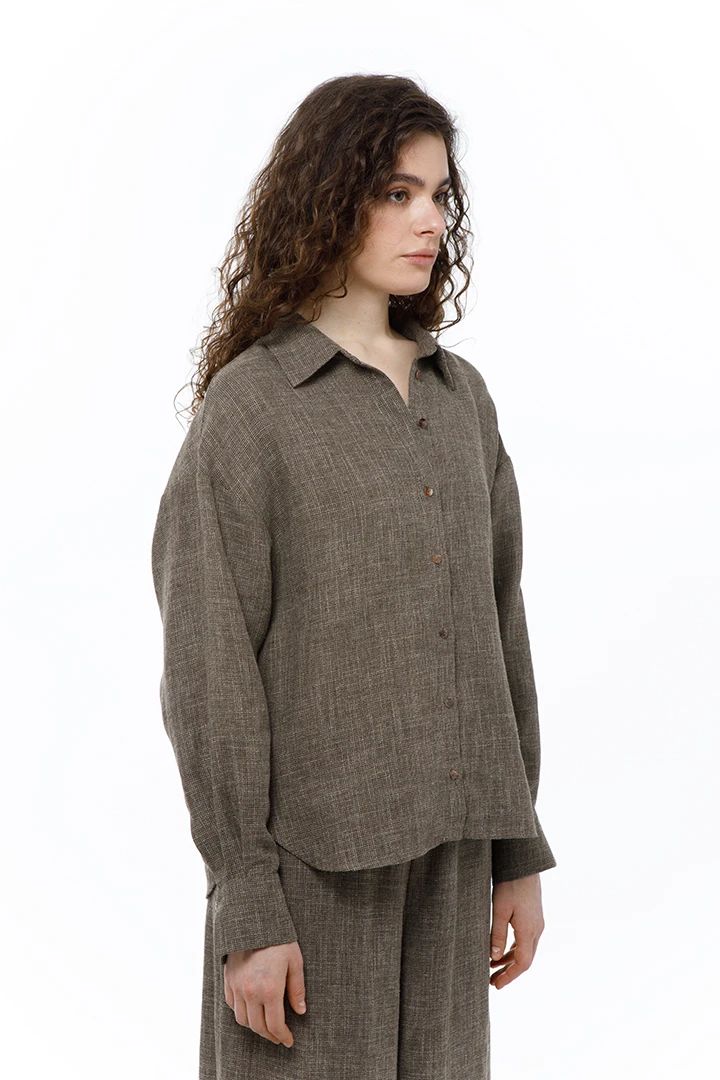 Рубашка классического кроя из легкого хлопка. Выполнена в четырех оттенках: черный, зеленый, горчичный, коричневый.