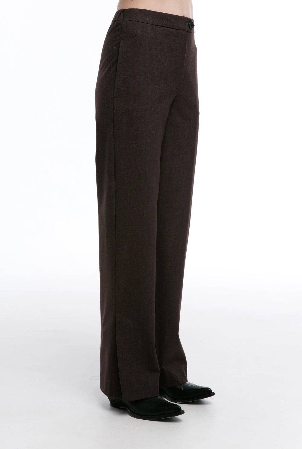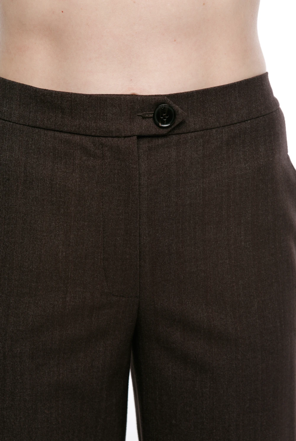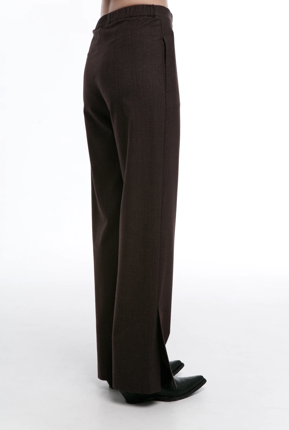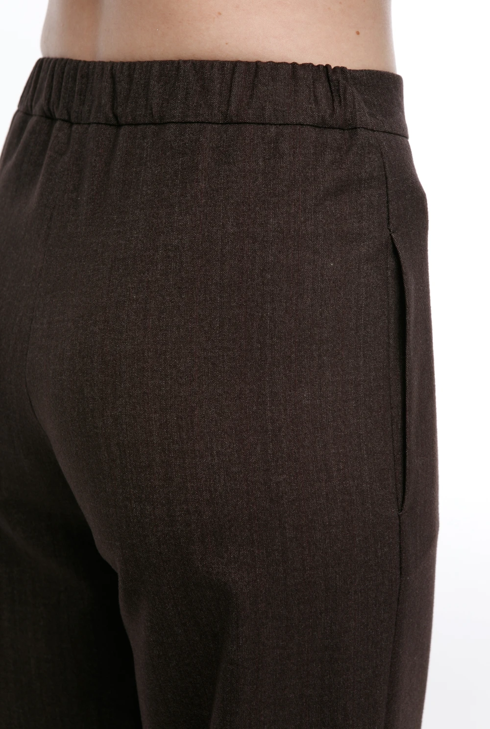 Брюки прямого кроя с резинкой на спинке. Созданы в трех цветах: черный в полоску, коричневый и терракот