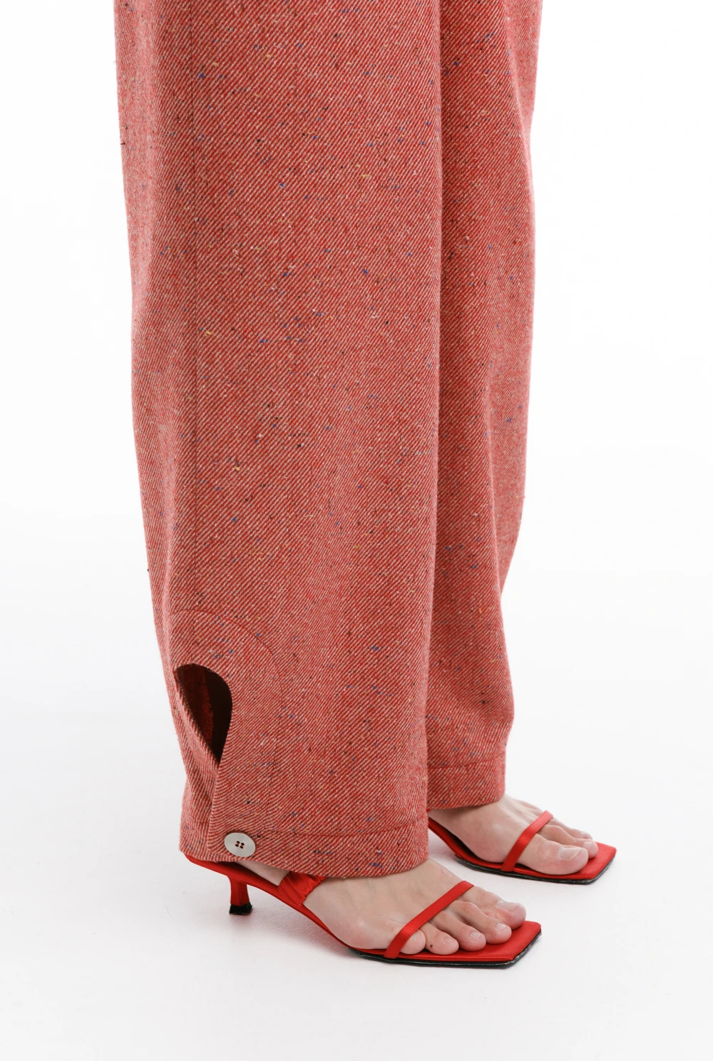 Юрюки свободного кроя с застежкой по бокам брючин. Выполнены в двух цветах: красный и серый