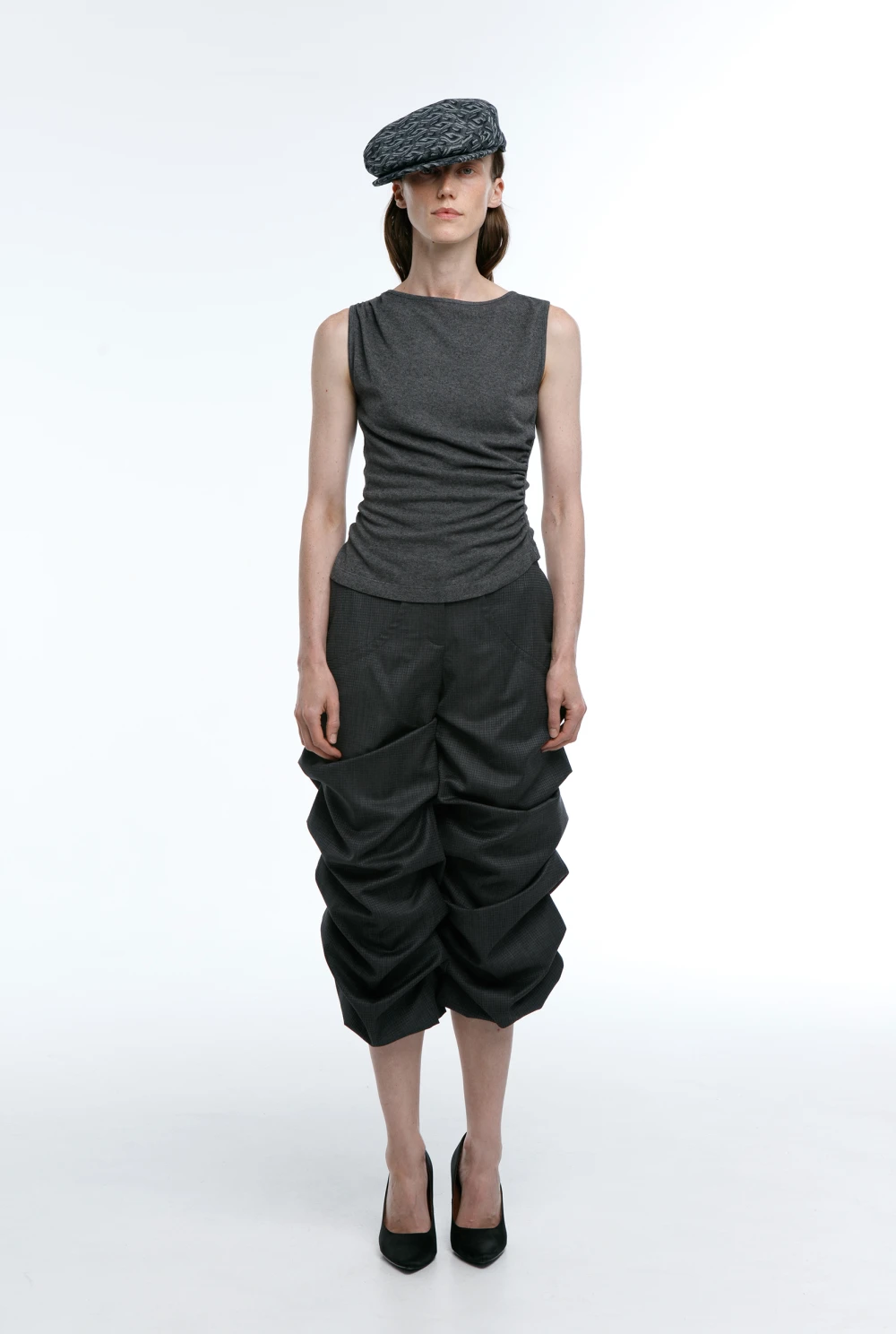 Брюки-капри с оборками на высокой посадке из 100% шерсти