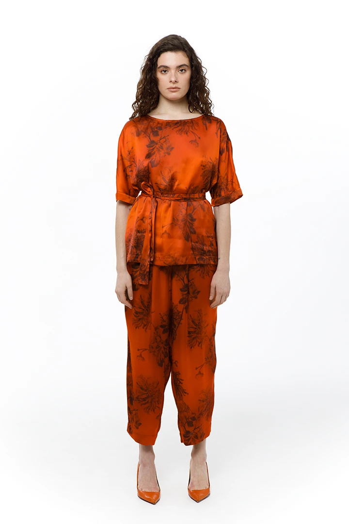 Зажуенные к низу брюки с поясом на резинке. В комплекте идет дополнительный пояс.