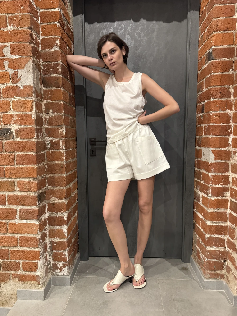 Мы разработали майку One. One из мягкого хлопка со льном нежно обнимает фигуру.