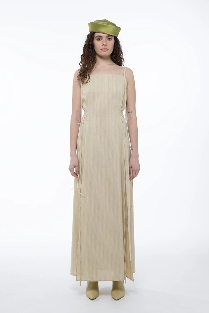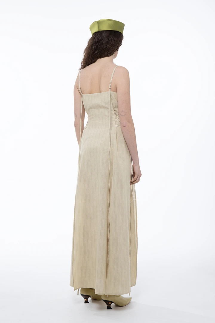 Платье-сарафан макси на тонких лямках с разрезами по бокам.